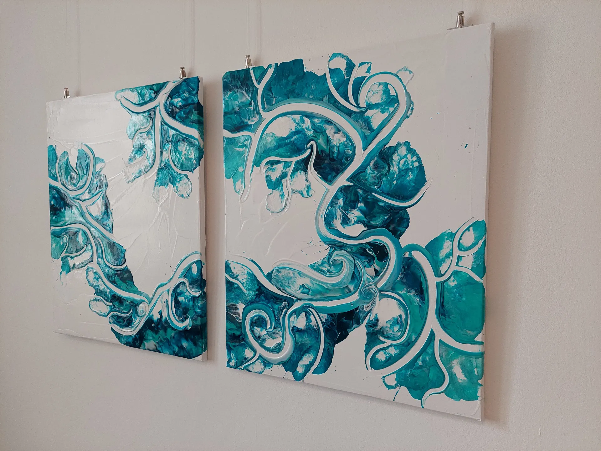 Gesamtwerk bestehend aus 2 Teilen zu je 60 x 50 cm, gesamt 60 x 100 cm.