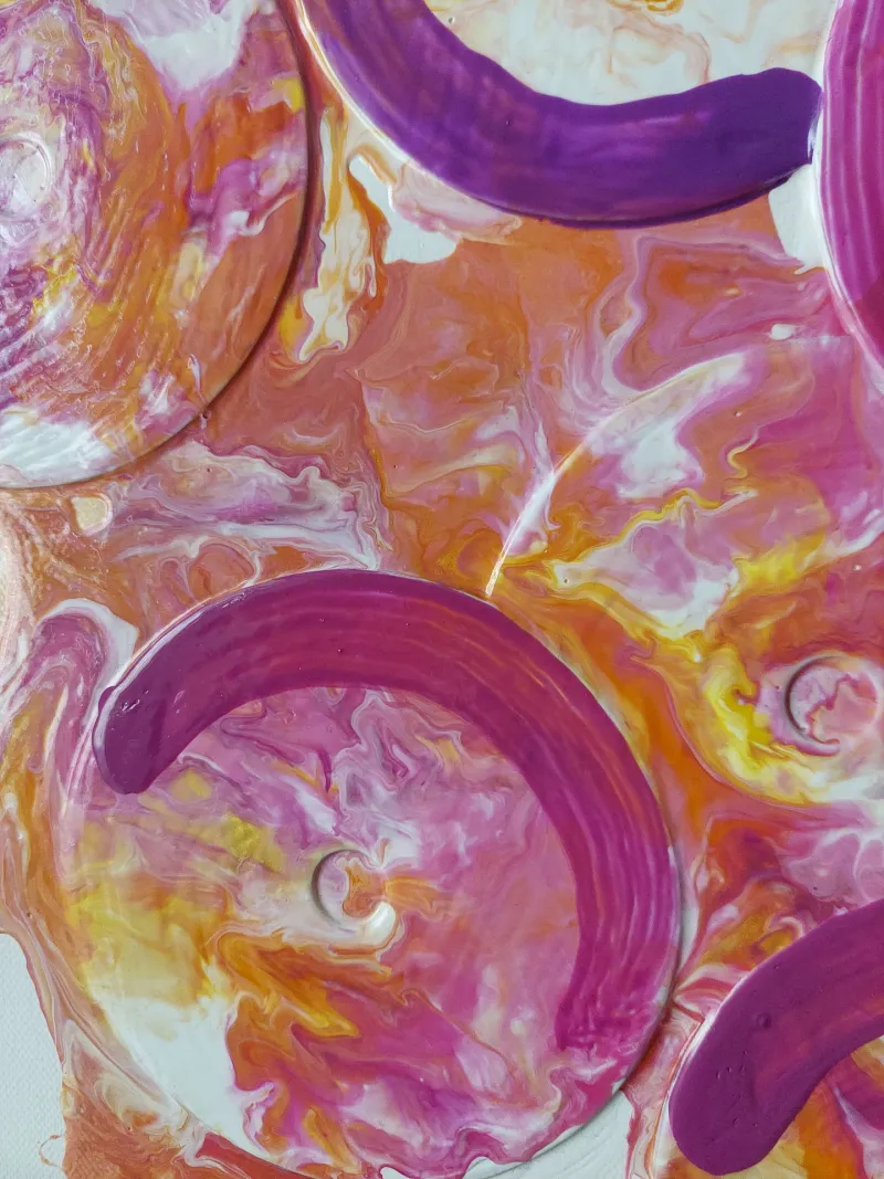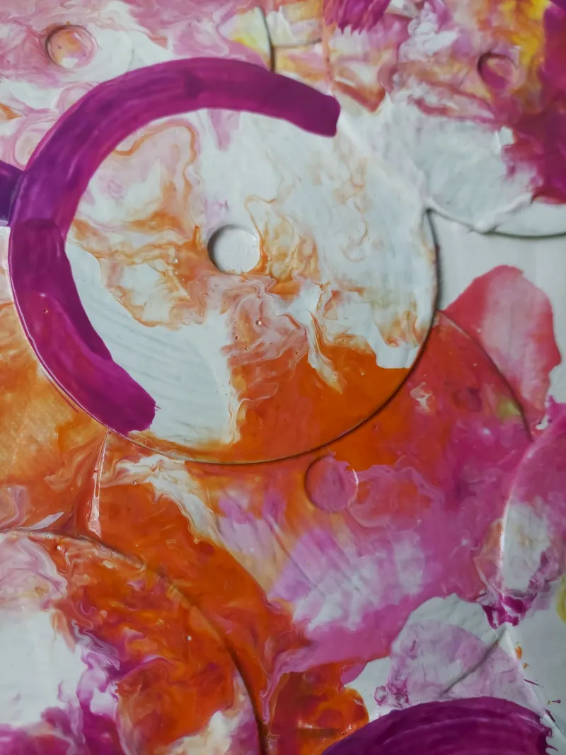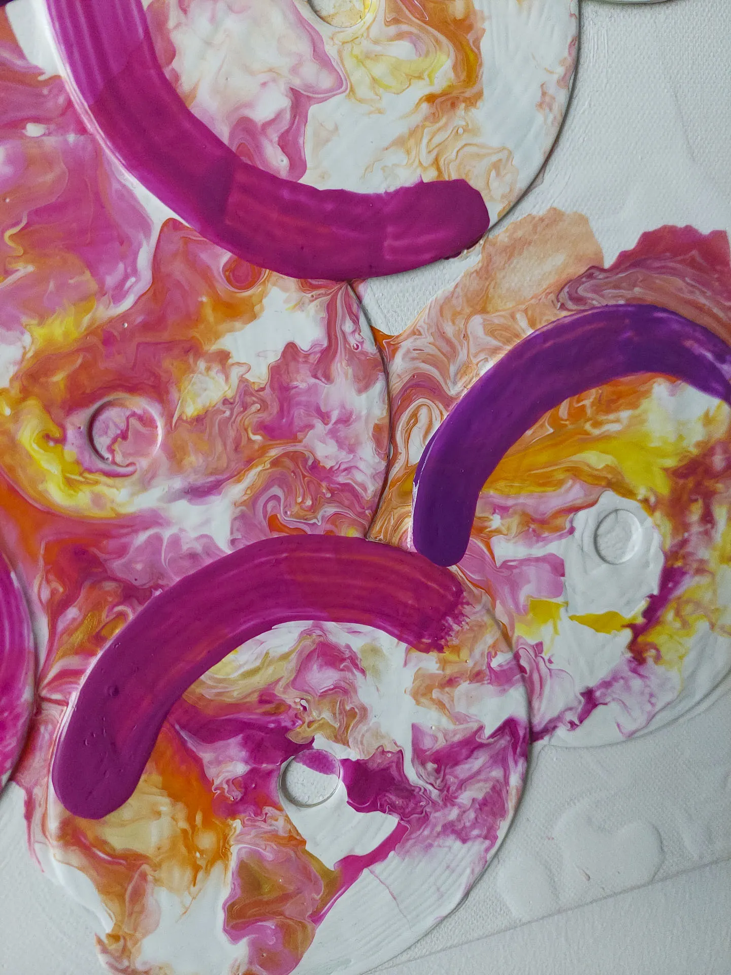 Achten Sie darauf, dass bemalte Flächen nicht in direkten Kontakt mit anderen Materialien (wie Papier oder Plastikverpackungen) kommen. Trotz Versiegelung könnten die Flächen verkleben und sich nur schwer – oder gar nicht – ohne Schäden voneinander lösen.