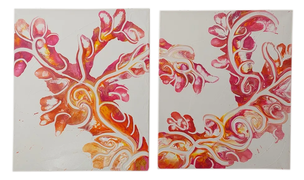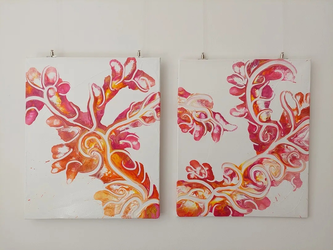 Gesamtwerk bestehend aus 2 Teilen zu je 60 x 50 cm, gesamt 60 x 100 cm.