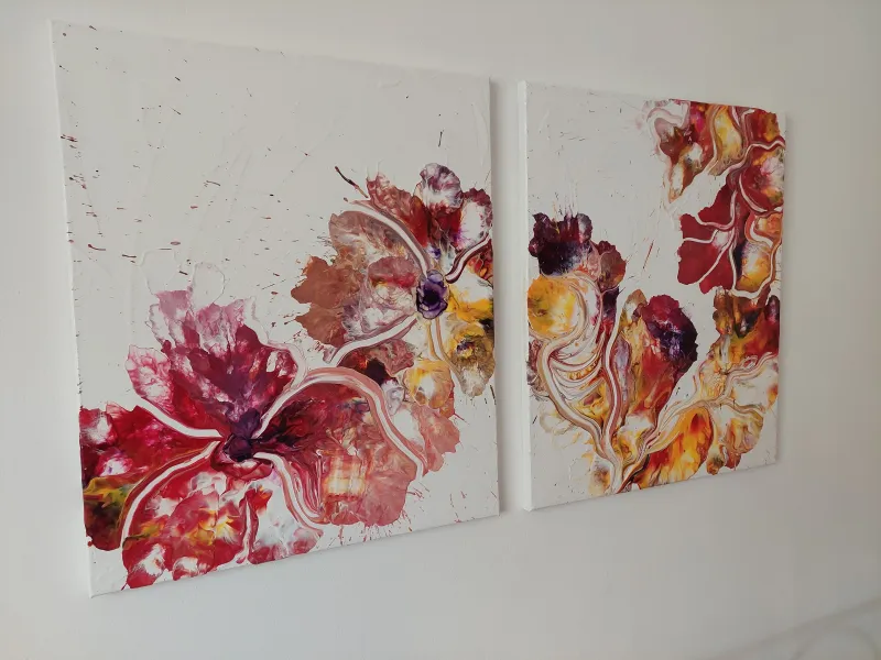 Lagern Sie Gemälde am besten stehend und nur locker aneinandergelehnt, um Beschädigungen zu vermeiden. Bitte vermeiden Sie das Stapeln mehrerer Werke sowie das Ablegen schwerer Gegenstände auf den Bildern.