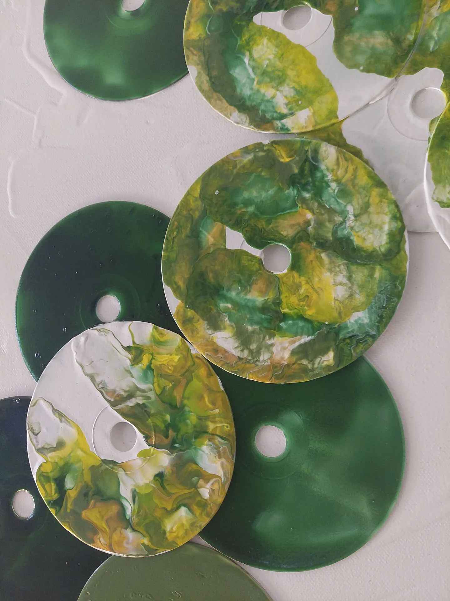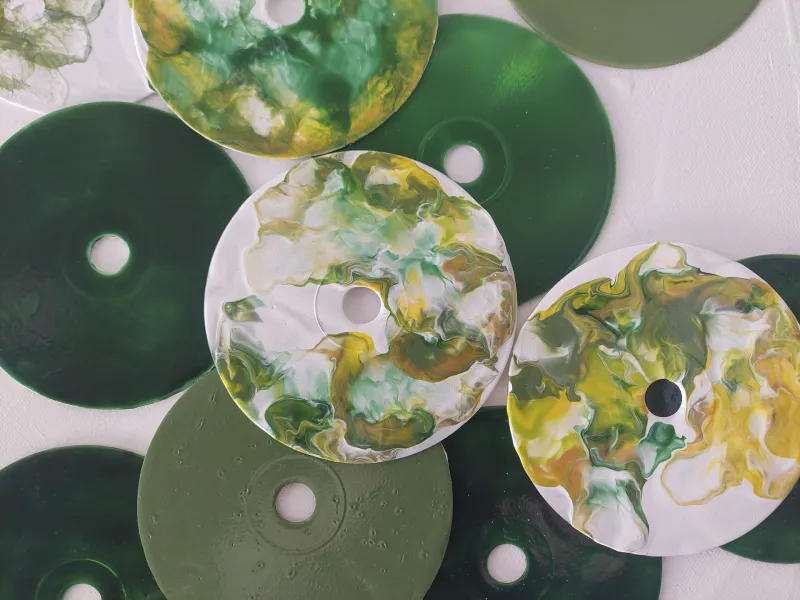 Achten Sie darauf, dass bemalte Flächen nicht in direkten Kontakt mit anderen Materialien (wie Papier oder Plastikverpackungen) kommen. Trotz Versiegelung könnten die Flächen verkleben und sich nur schwer – oder gar nicht – ohne Schäden voneinander lösen.