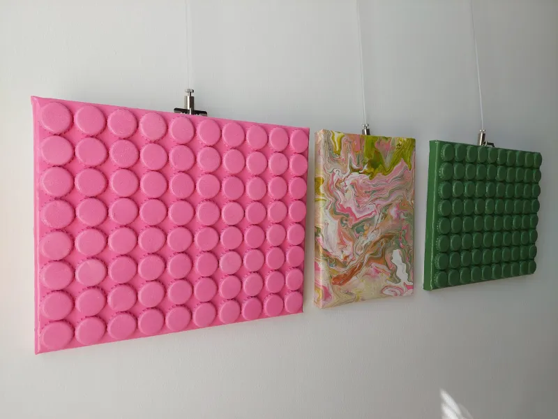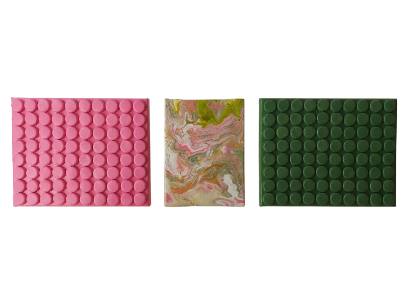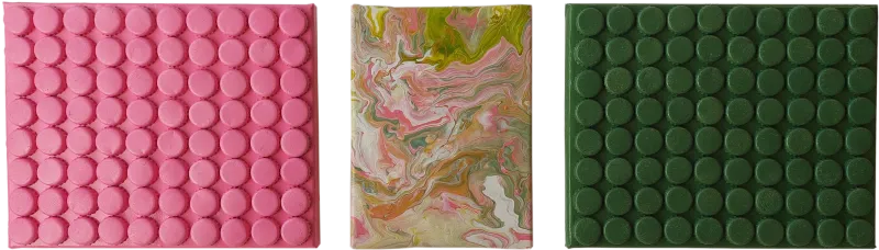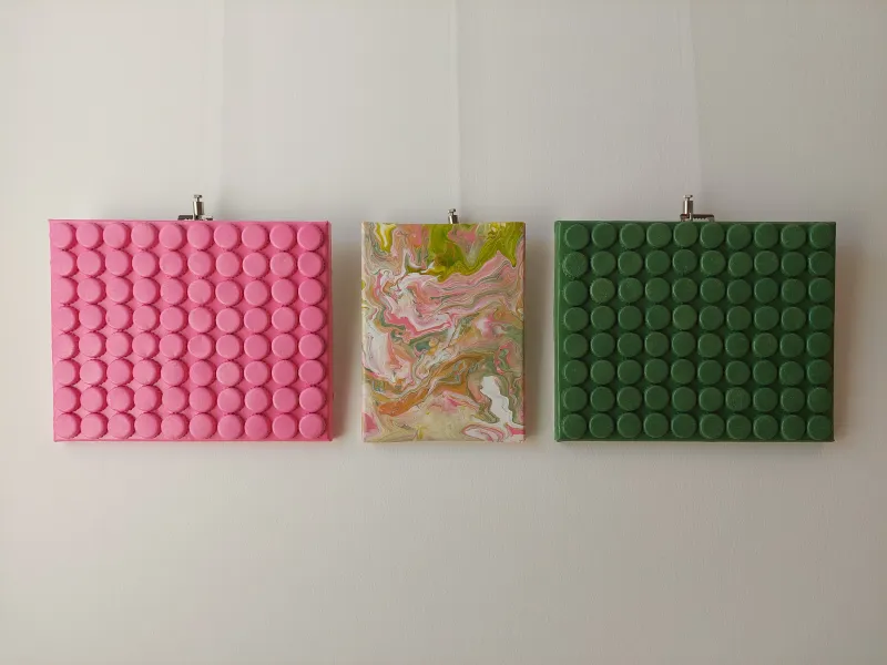 Achten Sie darauf, dass bemalte Flächen nicht in direkten Kontakt mit anderen Materialien (wie Papier oder Plastikverpackungen) kommen. Trotz Versiegelung könnten die Flächen verkleben und sich nur schwer – oder gar nicht – ohne Schäden voneinander lösen.