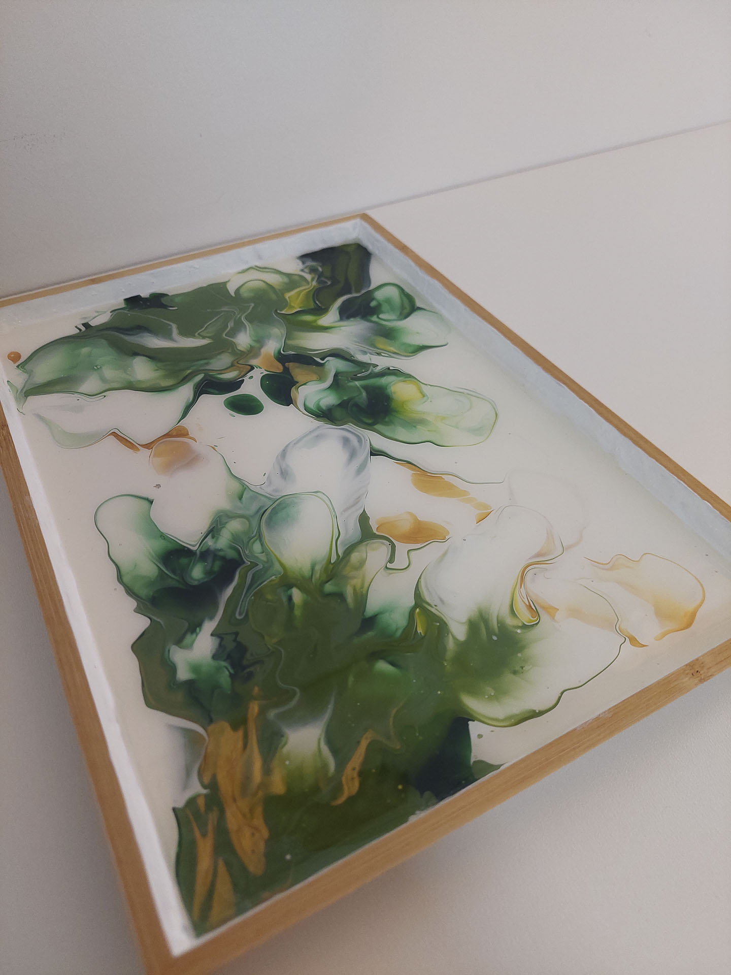 Achten Sie darauf, dass bemalte Flächen nicht in direkten Kontakt mit anderen Materialien (wie Papier oder Plastikverpackungen) kommen. Trotz Versiegelung könnten die Flächen verkleben und sich nur schwer – oder gar nicht – ohne Schäden voneinander lösen.